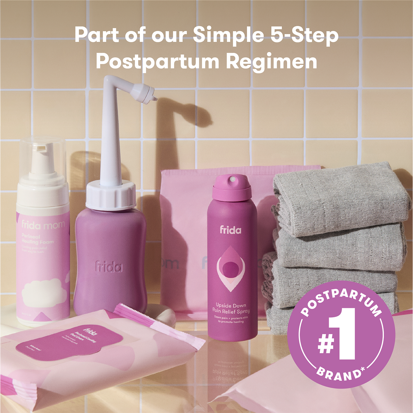 Frida Mom Anesthetic Spray is expertly formulated with hospital-strength benzocaine and glycerin to deliver instant pain relief and a protective barrier for sensitive skin. Perfect for postpartum women seeking immediate comfort after childbirth, this spray is gentle enough for the area and ideal for targeted, soothing relief. Infused with calming aloe and witch hazel—without parabens, phthalates, or fragrances—this dermatologist-tested formula supports skin recovery and comfort. The unique upside-down spray design ensures easy, hygienic, and no-touch application, reaching exactly where it’s needed. Simply spray the affected area for fast-acting comfort and ongoing protection during your healing process.